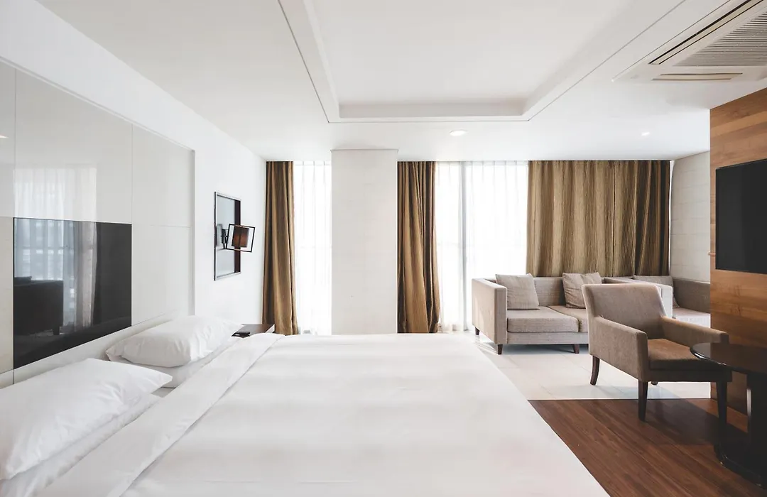 Das Hotel verfügt über 85 Zimmer mit einem Flachbildfernseher mit Satellitenkanälen sowie einer Minibar. Einige der geräumigen Zimmer sind auch mit einer Kaffee-/Teemaschine, einem Kühlschrank und Glasgeschirr ausgestattet. Die Badezimmer sind mit einem Bidet, einer getrennten Toilette und einer Dusche augestattet und bieten zudem eine Duschhaube und Hausschuhe. Während des Aufenthalts in der Unterkunft können Sie einen Ausblick auf die Stadt genießen.